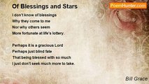A cup of OJ to start the day Wife, child, cat to help A pill or two that helps grow old Money to pay the bill Moment of silence to recollect These small blessings more than a few.Bill Gracehttp://www.poemhunter.com/poem/small-blessings/
