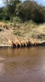 Une vingtaine de lionnes s'approchent du rivage pour boire près des alligators