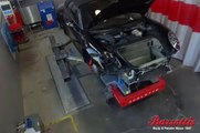Porsche auto body repair with Celette frame machine in Barsotti's Body & Fender Service-California