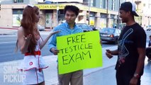 Voilà une expérience sociale pour la bonne cause ! Un homme accompagné d'une infirmière très sexy va demander à des passants s'ils sont prêts à faire un examen gratuit des testicules. Ce que les volontaires ne savent pas, c'est que chacune de leur participation rapporte 100 $ !