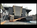 http://www.pupia.tv - Vico Equense (Napoli). Dopo cinquant'anni l'ecomostro di Alimuri, lo scheletro di cemento di un albergo abusivo mai completato, un’orribile costruzione sulla costa di Meta di Sorrento, collassa su se stesso per effetto delle microcariche di esplosivo piazzate nei pilastri di cemento. Si completa così l'operazione di risanamento ambientale voluta dal Comune di Vico Equense. Il rudere si è accartocciato su se stesso per effetto di sessanta chili di esplosivo.