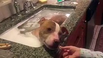 This short video shows a sweet young pup receiving a warm, relaxing bath in the safe hands of his new foster parents.