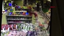 Lastiği patlayan otomobilin markete girdiği anlar kamerada