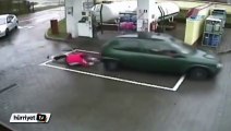Dalgın sürücü benzinlikte pompacıyı yerlerde sürükledi