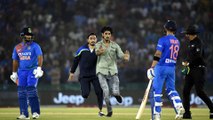 Pitch invader tries to shake hands with Virat Kohli, taken off field