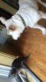 Bleu the kitten is fascinated with the lizard just outside the window. Unfortunately the moment is cut short when the family dog persistently tries to play with Bleu. What a hilarious moment caught on camera! Credit to 'Laurapetnanny'.