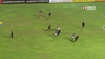 Dênis arriscou de longe e obrigou Raniere a fazer uma ótima defesa