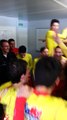 Joie du vestiaire U15 après la victoire à Chambery.