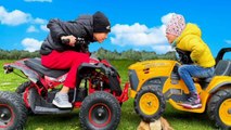 Funny story about Cars. Alex Ride on Power Wheels Tractors. Car Toy Play