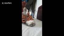Ce petit oiseau adore les câlins. Il est aux anges