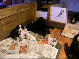 29 janv Lily Rose mâchouillant le tissu, puis femelle verte, mâle rouge, mâle turquoise et enfin femelle mauve