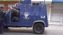 Kadıköy’de, Kobani olaylarını bahane ederek eylem yapmak isteyen gruba polisler müdahale etti. Müdahale sırasında bir eylemci başından yaralanarak kanlar içerisinde yerde kaldı. Irak Şam İslam Devletinin (IŞİD) Kobanide saldıralarını arttırmasının ardından başlayan şiddet gösterileri nedeniyle İstanbul Emniyet Müdürlüğü alarm durumuna geçti, bütün izinler kaldırıldı. Öğle saatlerinde İstanbul Kadıköy ve Sultangazide provokatörler izinsiz gösterilere başladı ve mahalleliye saldırdılar. kobani,kobani eylemleri,kobane eylemleri