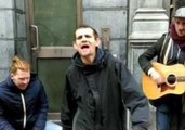 Homeless Man Raps With Popular Irish Band