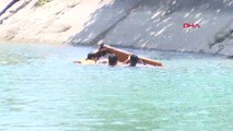 Ağrı'nın Taşlıçay ilçesinde etkili olan soğuk hava nedeniyle yüzeyi buz tutan nehir, gençlerin eğlence alanına dönüştü