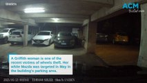 A thief steals all four wheels from a car