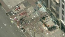 Aerial footage shows firefighters dousing a fire at a building next to St George's School in Weybridge after reports of an earlier explosion.