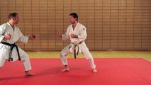http://www.shotokanunleashed.com Close to medium range, ju ippon kumite. Chudan zuki attacks. Single punch attacks, to the body, free block and counter.
