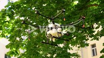 Drone Watering plants in Europe - Steady Tracking Shot