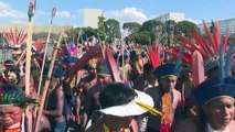 Plus de 1000 indigènes du Brésil ont manifesté à Brasilia mardi pour dénoncer "l'attaque systématique" de leurs droits. Ils sont opposés à un projet de loi qui permettrait au Congrès de décider de la reconnaissance de leurs terres. Durée: 00:53