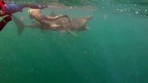 Basking shark close bathers