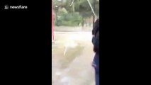 Trampoline crashes into house roof during strong winds