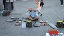 Street Drummer VS dancing kid : unbelievable double performance!