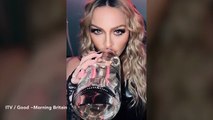 Madonna leaves little to imagination in corset and fishnets as she shows tour highlights