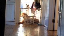Tiny Dog Uses Large Dog As Step Ladder To Aid Escape