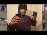 Kula uderzyła najpierw w strzelbę, po czym obiła się i trafiła napastnika w brzuch.