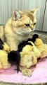 The lovely cat teaches the cock how to take care of the chicken! Cute and funny animals