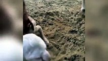 Lamb with human-like features including eyes, nose and mouth is born on a farm in Russia