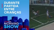 Homem invade campo de futebol e dá voadora em criança de 10 anos; veja vídeo