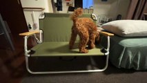 Testing the strength of new chair.