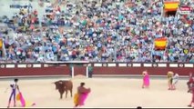Cogida de un toro al torero Saúl Jiménez Fortes en Las Ventas (Feria de San Isidro 2015). Footage Bullfighter gets gored in the neck.