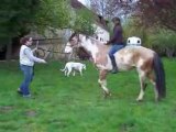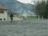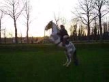 Travail en liberté : couché, levade, puis cabré - câlin