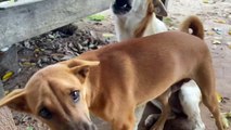 Stray Dog Helps Hungry Cat