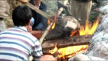 The person demonstrates his devotion by staying up on the cross for as long as he can. A slight nod of the head signals the organizers to put him down from the cross.