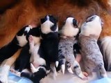 Border Sheltie pups at 2 weeks nursing