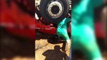 Caminhoneiro se perde em curva e sofre acidente na PR-239, em Assis Chateaubriand; assista
