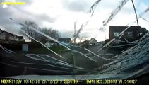 Un cygne plonge et s'écrase sur le pare-brise d'une voiture en mouvement, puis continue de voler.
