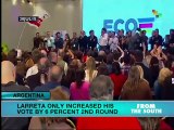 Mayoral elections were held in Buenos Aires, Argentina yesterday. Horacio Larreta of the center-right PRO party won 45% of the vote, followed by Martin Lousteau of the moderate right-wing ECO party. President Cristina Fernandez' Front for Victory party came in third with 21% of the vote with Mariano Recalde as its candidate. As no candidate obtained over 50% of the vote, the top two contenders will run in a second round on July 19. Laureano Ponce reports from Buenos Aires. teleSUR
