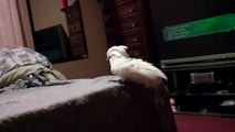 Umbrella Cockatoo dances, poops and opens a jar of peanut butter eats from it-Adorable