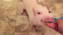 Mini Pig eats peanut butter for the first time