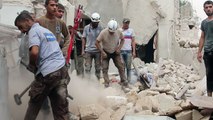 De très fortes images tournées par un vidéaste de l'AFPTV montrent le moment de la chute d'un baril d'explosifs jeudi sur le quartier de Jab al-Qobbeh à Alep, au nord de la Syrie. Au moins dix personnes ont été tuées dans ce bombardement, qui a été mené par le régime avec des barils d'explosifs contre une cuisine gérée par le groupe islamiste Jabhat Chamiya, a indiqué l'Observatoire syrien des droits de l'Homme (OSDH). Durée:01:28