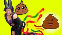 Maleficent Poop Colored Balls and Gummy Worms Poo Prank Compilation Superhero Fun