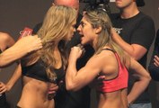 Ronda Rousey e Bethe Correia deram uma prévia do clima que deve marcar a luta entre elas, neste sábado. Na encarada antes do evento, a brasileira provocou Ronda e o clima ficou tenso.