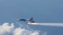 Sukhoi SU 34 launches air-to-air missiles