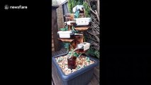 A cool video has emerged of a man in Montreal, Canada taking advantage of wintry conditions to produce an 'ice-mist waterfall' with boiling water.