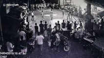 Terrifying moment basketball floodlights explode during game
