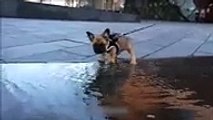Pour ce chiot, traverser une flaque ce comme traverser une rivière !